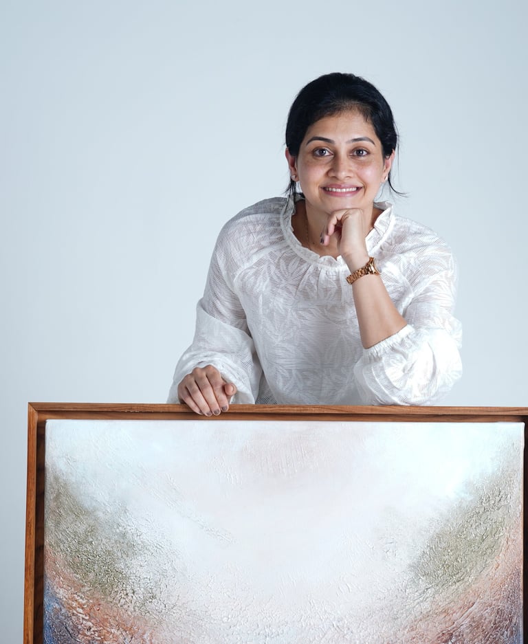 Texture is central to my process. Built in layers, my artworks interact with light and shadow to create movement and quiet visual interest. With over a decade of experience, I have created 150+ artworks, explored multiple mediums, conducted textured art classes for international students, collaborated with artists, and participated in exhibitions worldwide.